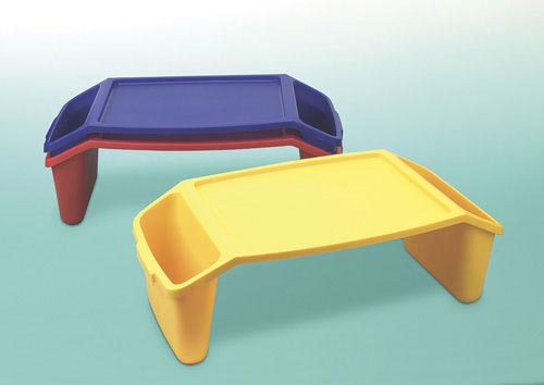 Used for eating reading writing grooming and games * Side pockets provide ample space for books magazines cards and make-up kits * Side handles make carrying and handling easy * The tray has 16 wide leg room and a 13 1/2 x 10 1/2 flat area with an edged rim * Overall dimensions are 22 1/2 x 12 x 7 * Made of plastic * Blue * Made in Israel * Sold bulk-no packaging