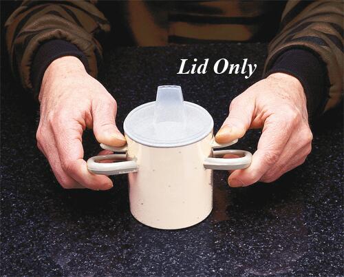 Functional and lightweight for people who have decreased grip strength wrist pain hand deformities or need to keep the wrist in a neutral position *The unique ergonomic design increases leverage of the hand and aids in raising the cup to the lips without wrist motion *The thumbs-on grip reduces the possibility of spilling due to trembling *The cup is double-walled to protect hands from heat or cold *It holds 8 ounces (237 ml) leaving 1ù (2.5 cm) of free space above the liquid to reduce spillage. Top rack dishwasher and microwave safe *cup dimensions