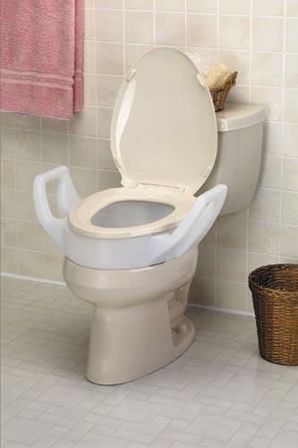 Elongated 19 Wide * 4Ê raised seat designed for use with a regular toilet seat and lid * Molded-in arms assist in getting off and on the seat * Arm height is 4 1/2 * Supports up to 300 lb * Hardware included * Packaged in brown box * Retail packaging available *