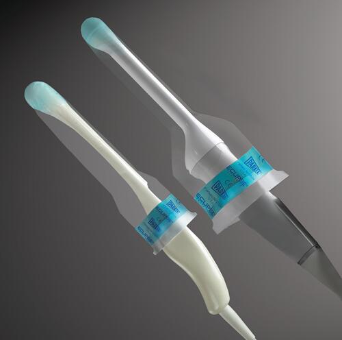 A soft latex-free disposable probe cover for medical ultrasound probes/transducers pre-gelled inside with Aquasonic©100 Ultrasound Transmission Gel * Fits most endocavity ultrasound probes * Non sterile * 2.37/1.75 W x 9.5 L (64mm/44mm x 241mm)