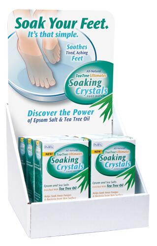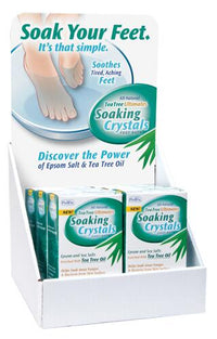 Includes 6 boxes of Soothing Crystals * Helps soak away fungus and bacteria from skin surface * Is a therapeutic foot soak featuring our exclusive blend of tea tree and peppermint essential oils Epsom salt and sea salt * This invigorating soak soothes aches and pains relieves itching and softens corns and calluses while fighting fungus and bacteria * Leaves feet feeling refreshed clean and smelling great *