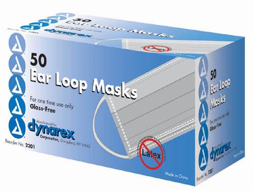 With Earloop Mask BX/50 * Blue pleated surgical mask with glass-free filter * Also available with optically clear plastic wraparound face shield which provides protection for the face and eyes against pathogens contained in body fluids * Latex free *